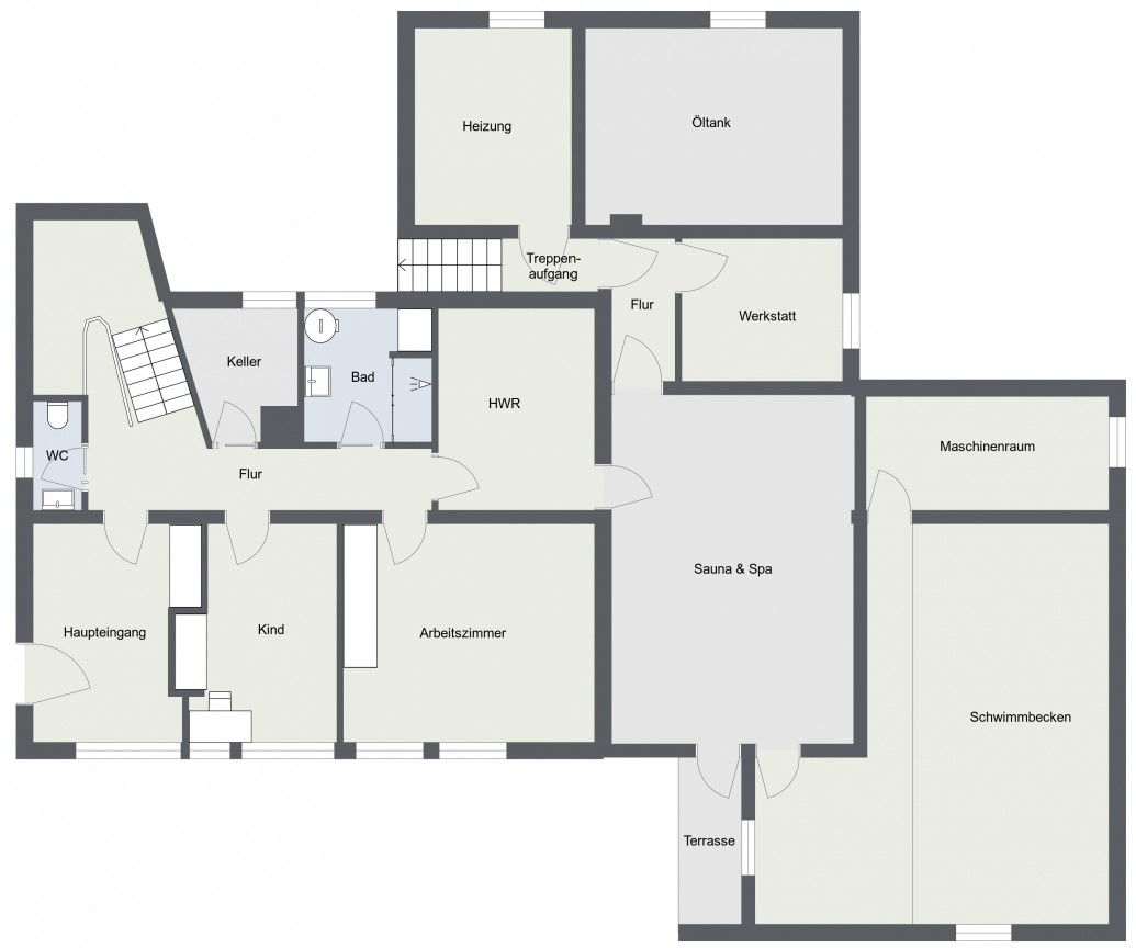 Das Haus wurde 1960 erbaut und 1971 um einen großzügigen Anbau erweitert, in dem weitläufige Räumlichkeiten, ein Saunabereich sowie ein innenliegender Swimmingpool entstanden sind. Dieser Bereich bietet vielfältige Nutzungsmöglichkeiten – von Wellness über Fitness bis hin zu einem Gäste- oder Arbeitsbereich.